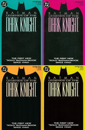 By the end of the decade, however, another boom was on. 1989's wildly successful Batman movie release boosted interest in the comics to the point that when a new series, Legends of the Dark Knight, was announced, retailers ordered hugely on the first issue. So many copies, in fact, that DC — knowing it could not deliver them all in the same week and fearful that retailers would be stuck with them — took the step of offering a different pastel-colored cover for each week's copies. The variant cover was thus born out of concern for retailers; but it would end up further commoditizing comics, as in the years that followed, Wizard magazine-reading collectors sought to locate versions that were thought rare.