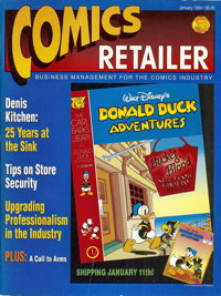 But that was in the future. Just before Thanksgiving — and 25 years to the day before the publication of this piece — I went to work. Over in the production department, the 22nd issue of Comics Retailer (at left, cover-dated January 1994) went to press that day; I familiarized myself with it and began contacting columnists.